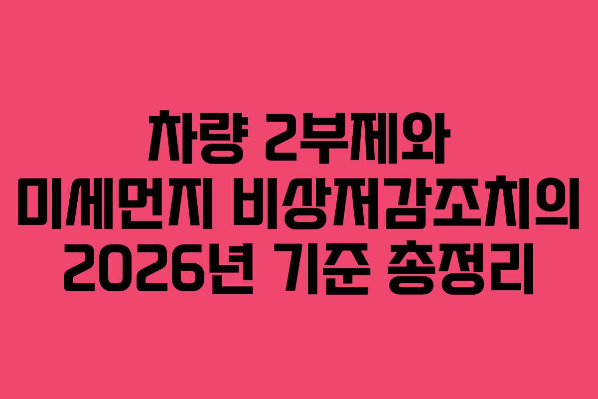차량 2부제는 미세먼지 농도가 일정 수준 이상으로 높아질 경우, 차량 번호판 마지막 숫자에 따라 특정 요일에 운행을 제한하는 제도이다. 홀수와 짝수에 따라 운행이 나뉘며, 2026년에도 이러한 규정은 지속적으로 적용될 예정이다. 반면, 3부제는 월요일부터 토요일까지 차량을 3개 그룹으로 나누어 운행을 제한하는 방식이지만, 사실상 시행되는 경우는 드물다. 이 제도는 법적으로는 존재하나, 현실에서는 2부제가 주로 시행된다.