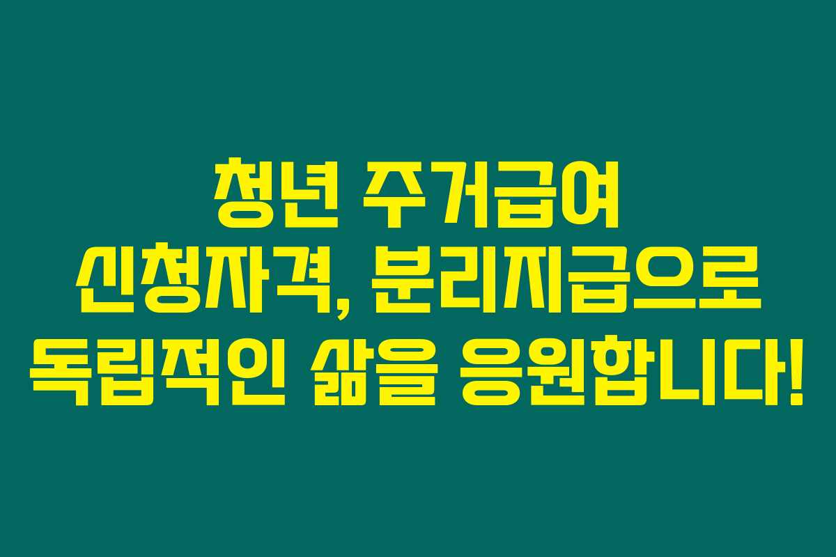 디스크립션: 청년 주거급여 신청자격 및 분리지급에 대해 자세히 알아보겠습니다. 제가 직접 확인해본 결과, 이 제도는 청년들에게 중요한 주거 지원을 제공하기 위해 마련된 것이며, 많은 분들이 해당 혜택을 받고 있답니다.