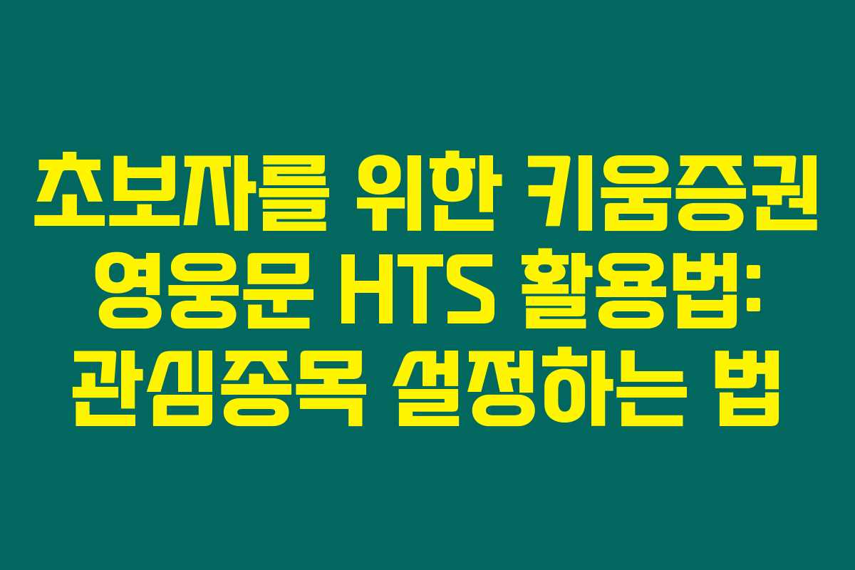 주식 투자의 세계에 첫 발을 내딛고 생각 중이라면, 키움증권의 영웅문 HTS를 간과할 수 없죠. 이 투자 프로그램은 주식 초보자에게 필수적인 정보와 도구를 제공합니다. 오늘은 주식 초보자도 쉽게 따라할 수 있는 키움증권 영웅문 HTS 사용법과 특히 관심종목 설정 방법에 대해 알려드릴게요.