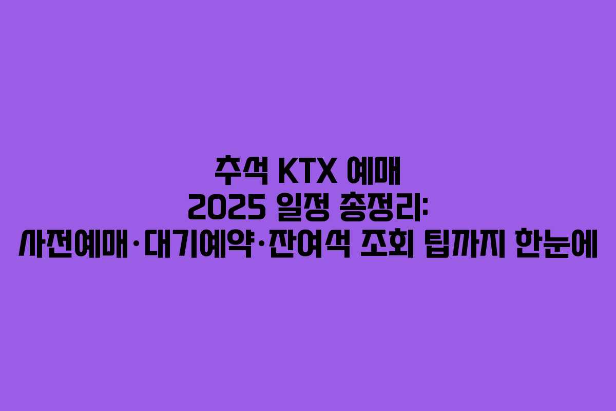 아래를 읽어보시면 2025년 추석 KTX 예매 시작일, 대기예약 방법, 잔여석 조회 요령, 우대 조건과 수수료를 한눈에 파악할 수 있습니다.