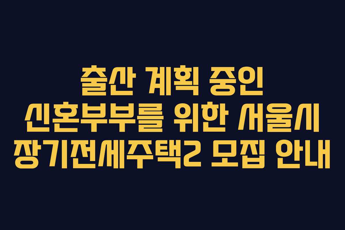 출산을 계획 중인 신혼부부를 위해 서울시와 서울주택도시공사가 제공하는 장기전세주택2의 모집이 시작됩니다. 이 프로그램은 안정적인 주거 환경을 지원하고, 출산 후 거주 기간을 연장할 수 있는 기회를 제공합니다.