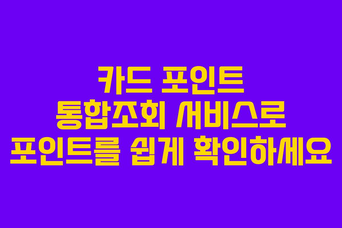 신용카드 포인트는 현금처럼 활용할 수 있는 유용한 자산입니다. 그러나 많은 사람들이 본인의 카드 포인트를 제대로 활용하지 못하고 소멸시키는 경우가 빈번합니다. 이 글에서는 카드 포인트 통합조회 서비스에 대해 알아보고, 이를 통해 포인트를 효율적으로 관리하는 방법을 소개합니다.