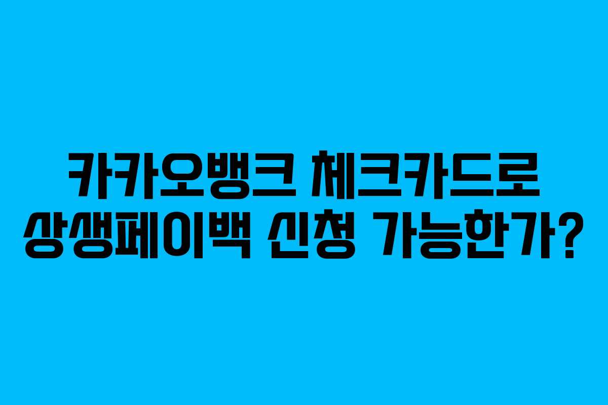 카카오뱅크 체크카드를 주로 사용하는 분들께서는 정부의 상생페이백 혜택을 받을 수 있을지 궁금할 것입니다. 이번 글에서는 상생페이백의 개념과 카카오뱅크 체크카드를 통한 신청 가능성에 대해 알아보겠습니다.