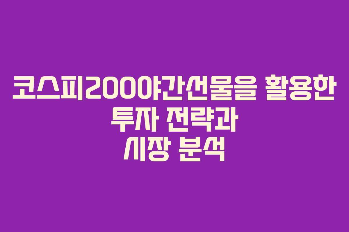 코스피200야간선물을 활용한 투자 전략과 시장 분석