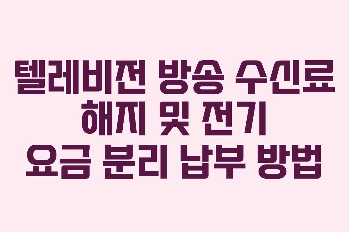 2025-08 기준, 이번 달부터 텔레비전 방송 수신료와 전기 요금을 별도로 납부할 수 있는 새로운 제도가 시행되었습니다. 아래를 읽어보시면 수신료 해지 방법과 전기 요금의 분리 납부 절차에 대해 자세히 알아보실 수 있습니다.
