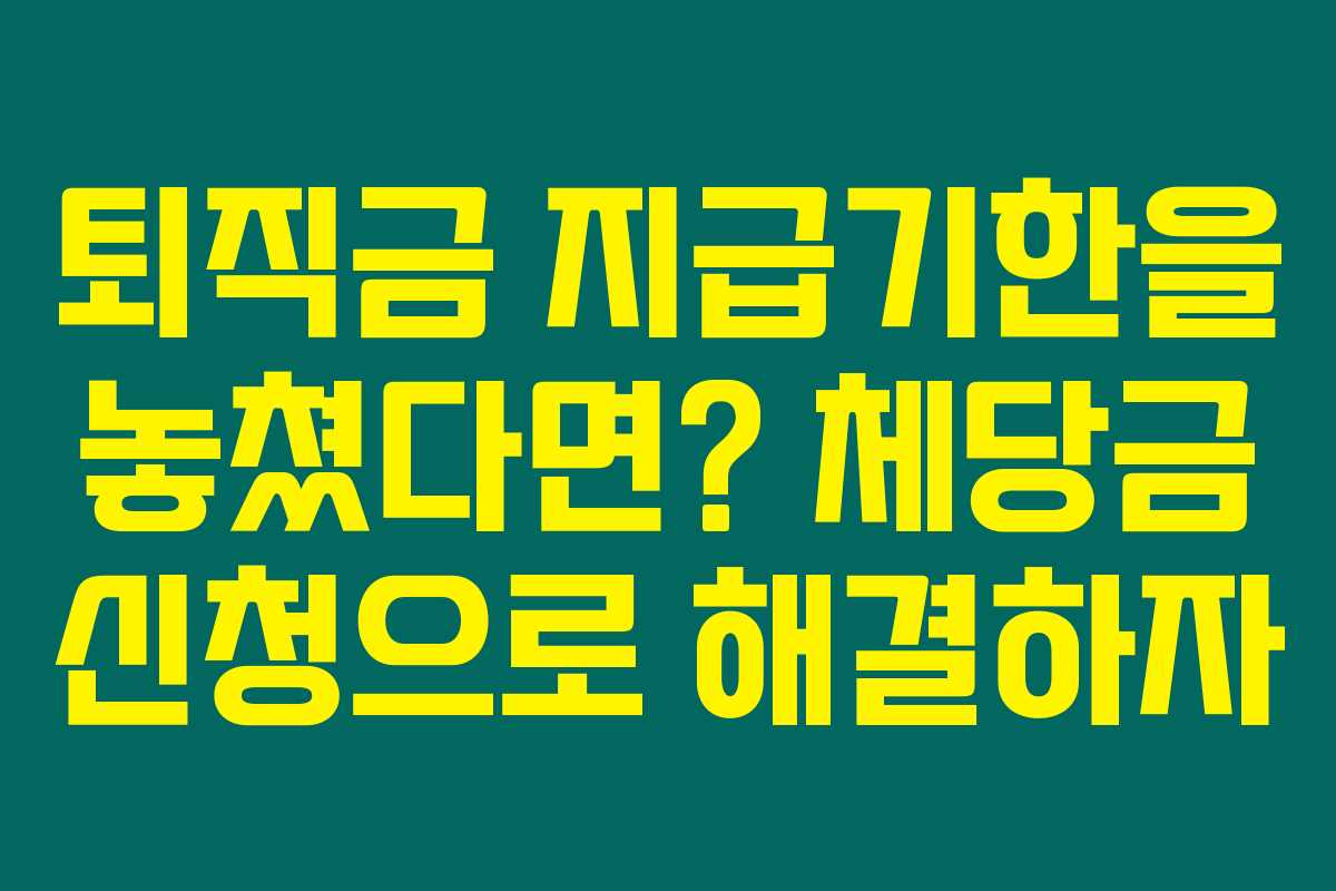 퇴직금 지급기한을 놓치고 있다면 반드시 이 정보를 확인해 보세요. 퇴직 후 급여가 지급되지 않는 상황에서는 국가에서 지원하는 체당금 신청으로 빠르게 도움을 받을 수 있습니다. 아래를 읽어보시면 퇴직금 지급기한과 대지급금인 체당금 신청 방법에 대한 자세한 내용을 알아보실 수 있습니다.