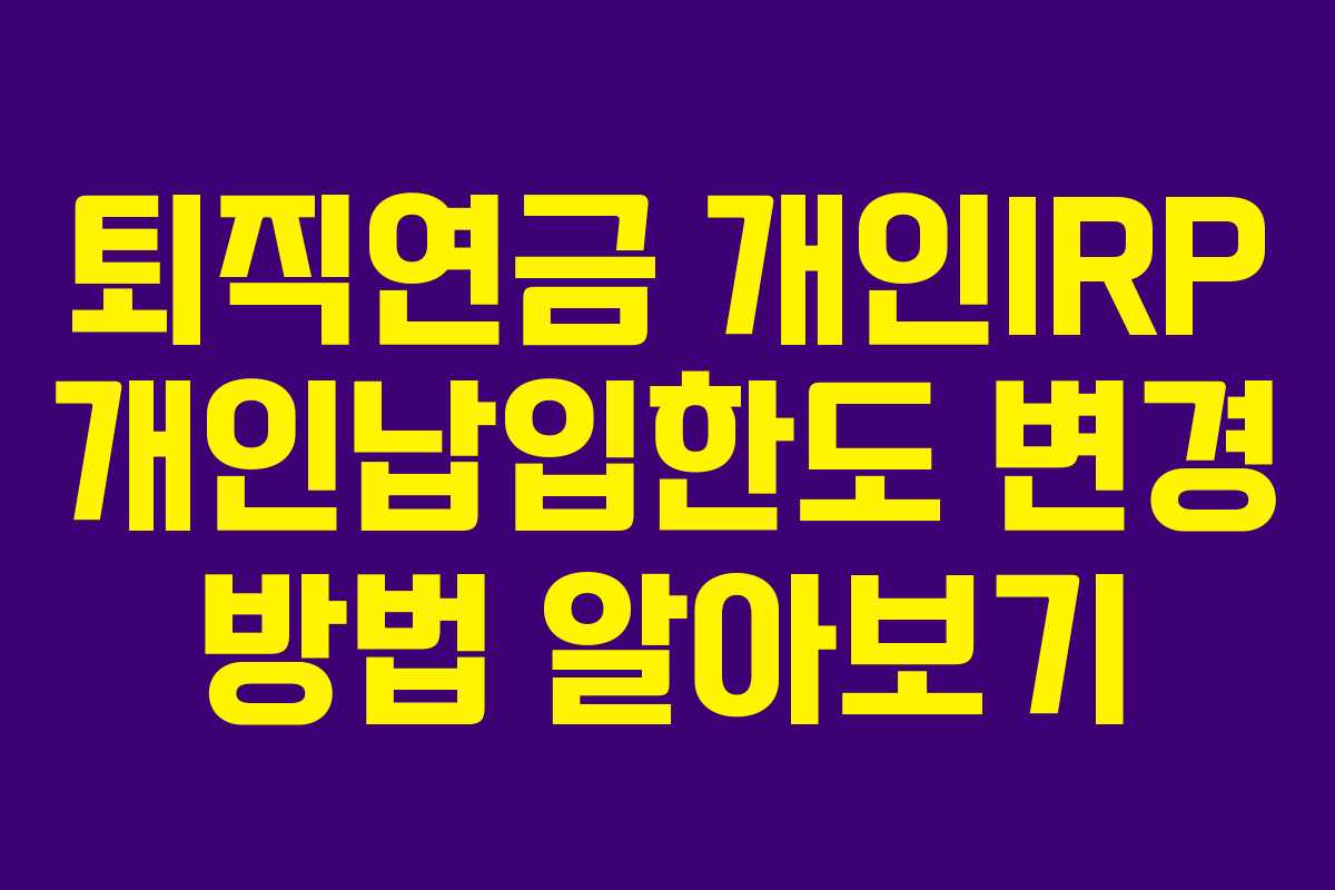 - 퇴직연금 개인납입한도 변경을 위한 실전 가이드