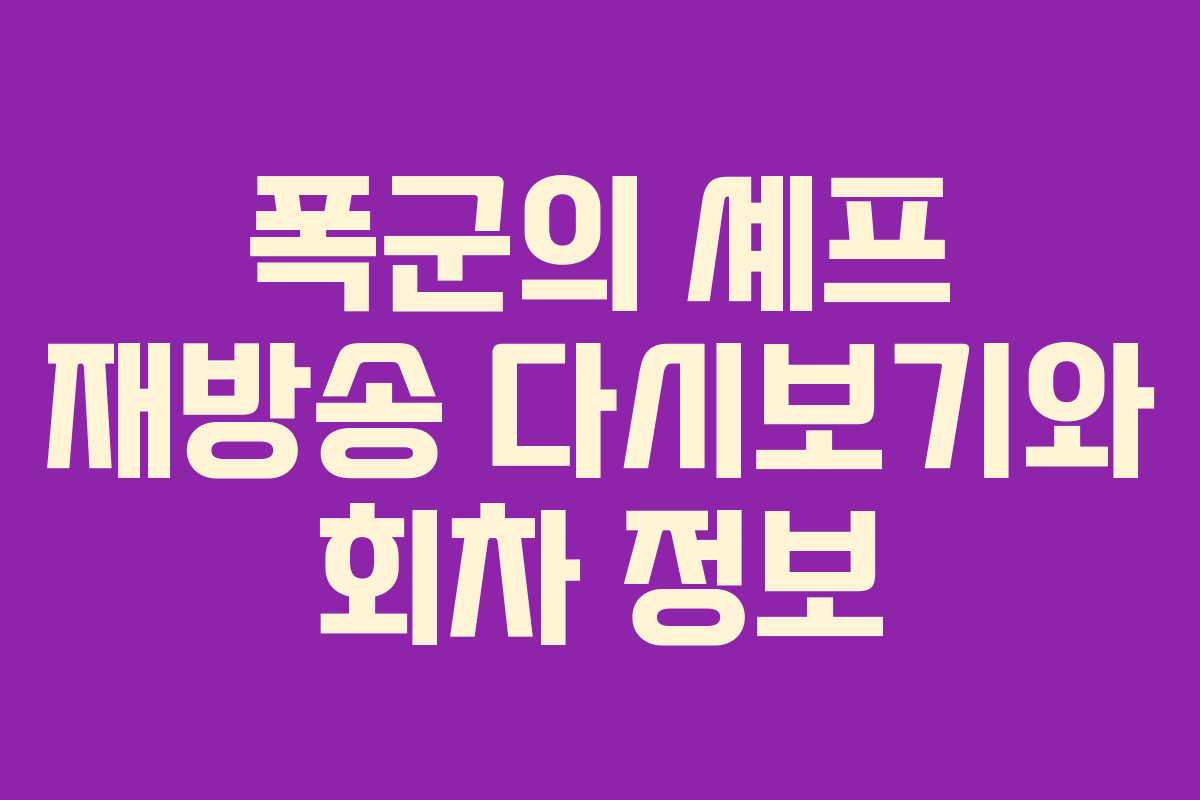 폭군의 셰프 재방송 다시보기와 회차 정보