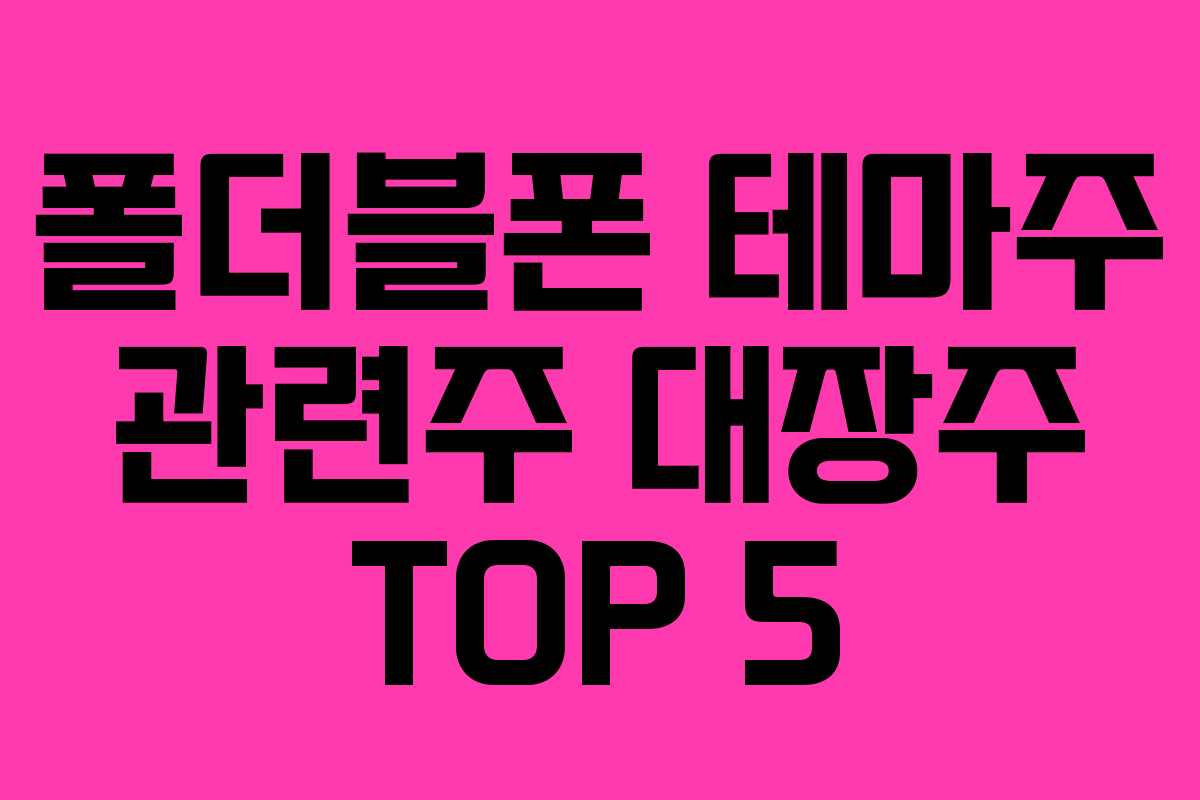 폴더블폰 시장은 최근 급성장하고 있으며, 이에 따라 관련 기업들의 주가도 큰 주목을 받고 있습니다. 삼성전자를 비롯한 다양한 기업들이 기술 경쟁을 벌이면서 부품 및 소재 기업들의 실적 개선 기대감도 커지고 있습니다. 이번 글에서는 폴더블폰 관련주 중 주요 기업들을 살펴보겠습니다.