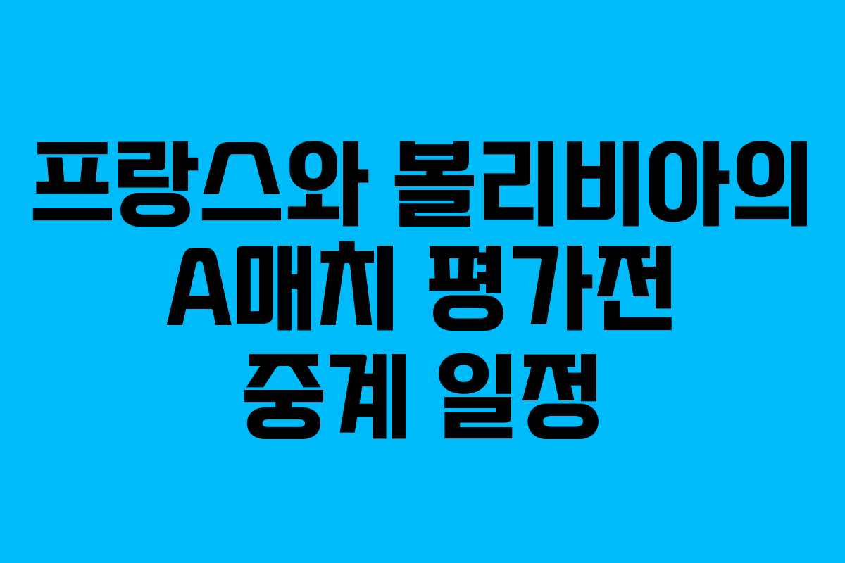 프랑스와 볼리비아의 경기는 한국 시간으로 6월 3일(월) 오전 4시에 시작됩니다. 현재 TV 중계는 편성되어 있지 않으며, 인터넷 중계를 통해 시청할 수 있습니다.