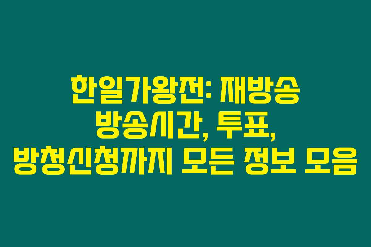 한일가왕전, 이 특별한 음악 대회는 한국과 일본의 트롯 국가대표들이 펼치는 열띤 경쟁이죠! 궁금한 점이 많으실 텐데요. 아래를 읽어보시면 방송시간, 재방송 정보, 방청신청 방법, 출연진 및 공식영상까지 모든 것을 세세하게 알려드릴게요. 이 기회를 놓치지 마세요!