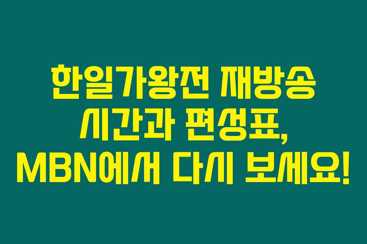 한일가왕전의 편성표는 MBN 공식 홈페이지나 각종 포털사이트에서 쉽게 확인할 수 있어요. 재방송 시간에 맞춰서 확인해 보세요!
