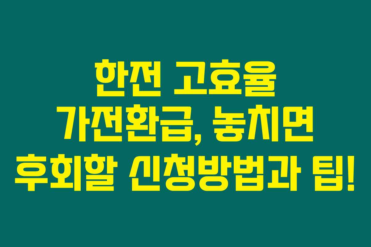 고효율 가전제품을 구매할 계획이라면 이 글을 꼭 확인해 보세요. 한전의 고효율 가전환급 지원 프로그램을 통해 최대 30만 원의 지원금을 받을 수 있는 기회를 놓치고 싶지 않으시죠? 하지만 신청 방법과 필요한 서류를 제대로 알지 못하면 오히려 시간이 낭비될 수 있습니다. 아래를 읽어보시면 신청 진행을 위한 모든 정보를 쉽게 이해하실 수 있을 거예요.