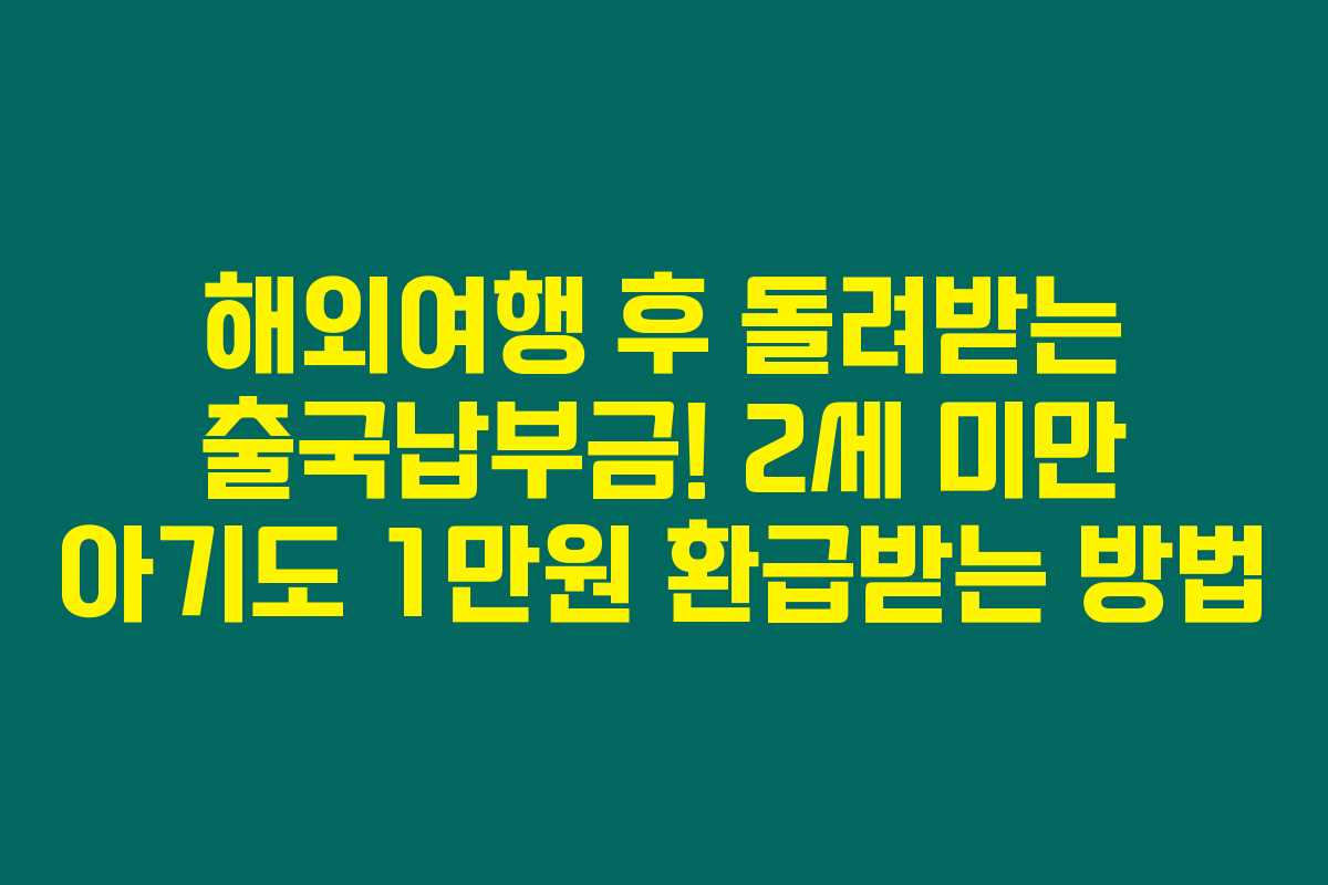 제가 직접 알아본 바로는, 출국납부금 환급 서비스는 많은 사람들에게 알려지지 않은 유용한 혜택입니다. 특히 2세 미만 아기를 동반한 가족에게는, 만 12세 미만 아동까지 확대된 혜택 덕분에 더욱 많은 금액을 돌려받을 수 있다는 사실을 발견했어요. 아래를 읽어보시면, 어떤 절차와 필요한 서류가 있는지에 대한 정보를 자세히 살펴볼 수 있습니다.
