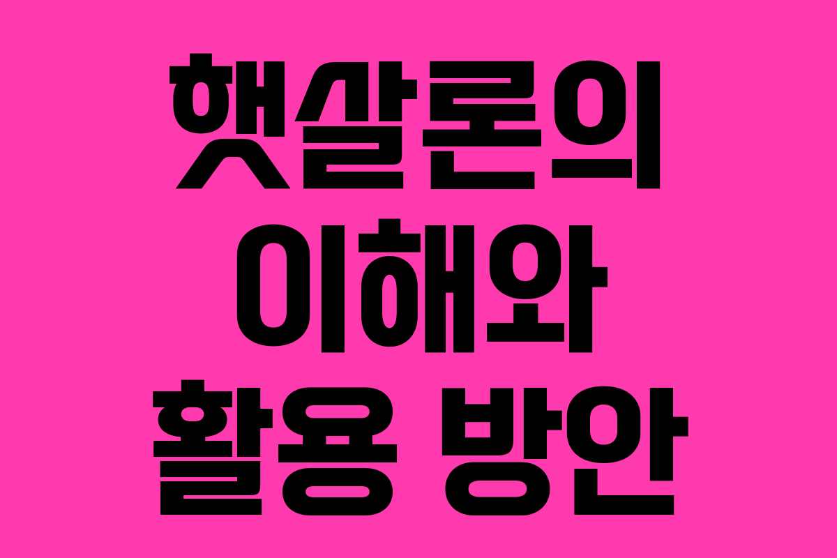 햇살론의 이해와 활용 방안