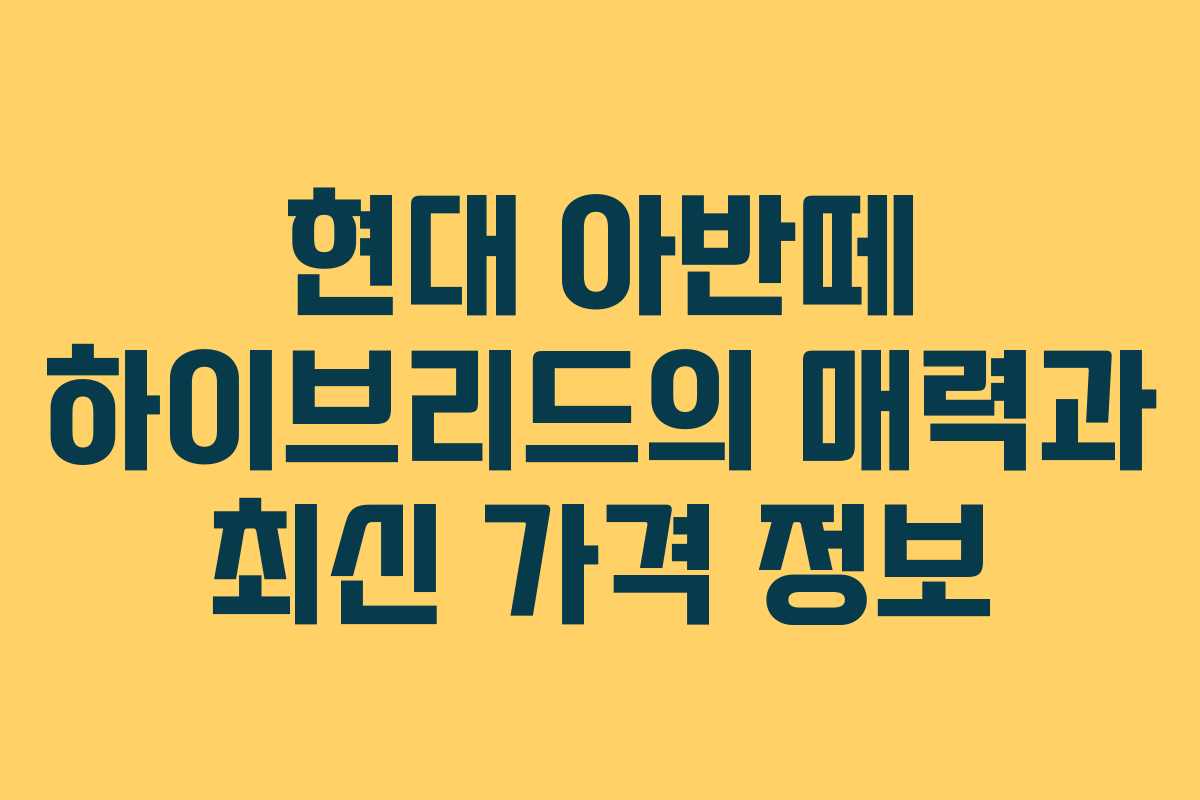 현대 아반떼 하이브리드의 매력과 최신 가격 정보