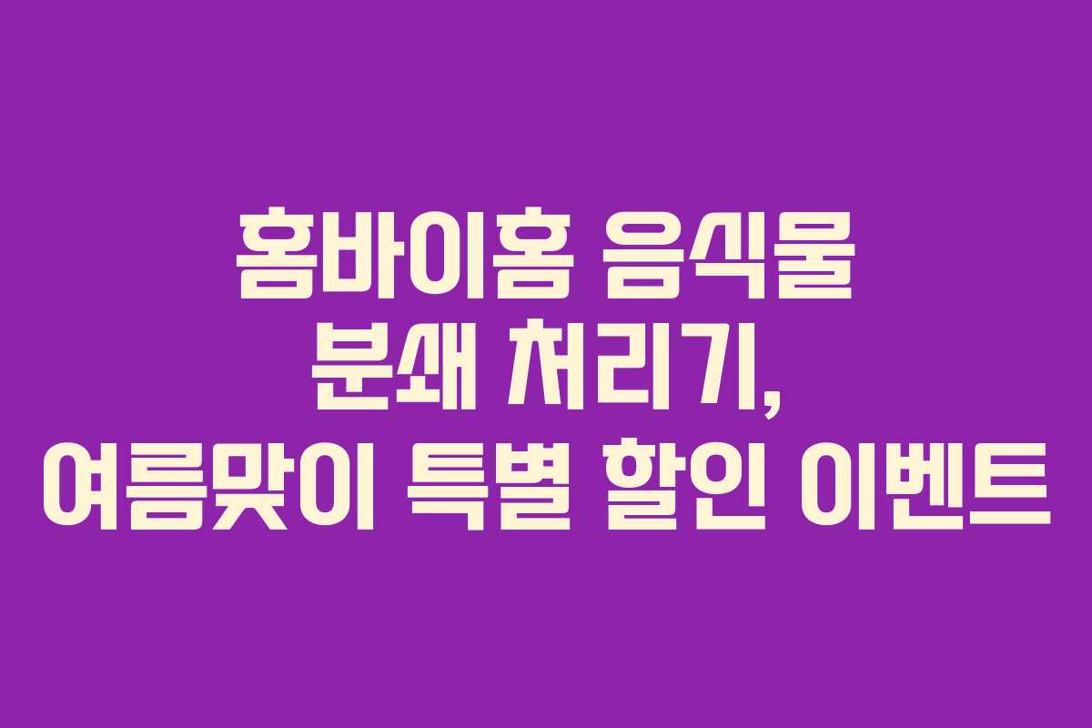 이번 여름, 음식물 처리기를 사용해보세요. 여름철에는 특히 음식물 쓰레기가 많이 발생하는데, 이를 효과적으로 처리할 수 있는 방법이 필요합니다. 홈바이홈 음식물 처리기는 그동안 고민했던 불편함을 해결해 드릴 것입니다.