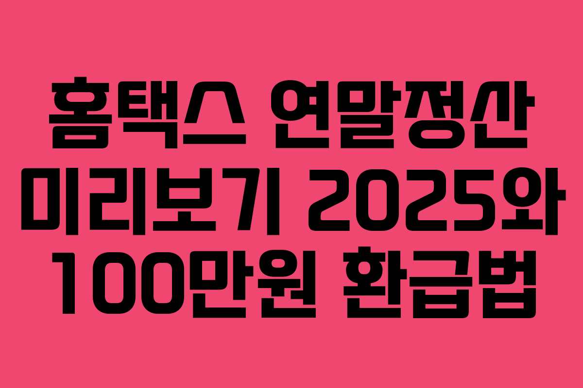 연말정산 시즌이 다가오면서 홈택스에서 제공하는 연말정산 미리보기 서비스가 많은 이들의 관심을 받고 있습니다. 이번 글에서는 2025년 연말정산 미리보기와 함께 100만원 환급법에 대해 알아보겠습니다.