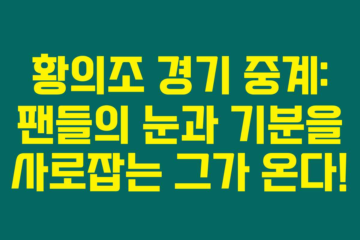 황의조 선수의 경기 중계는 단순한 경기의 흐름을 넘어서, 팬들과 함께하는 특별한 경험입니다. 그의 경기는 항상 긴장감과 흥분으로 가득 차죠. 오늘 이 글을 통해 황의조의 경기 중계를 더욱 깊이 있게 알아보겠습니다. 아래를 읽어보시면, 그가 어떻게 팬들의 가슴을 뛰게 만드는지에 대한 이야기를 발견할 수 있을 거예요!