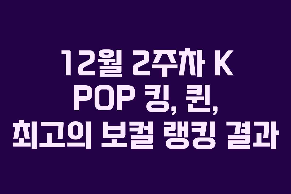 12월 2주차 K-POP 킹(KING), K-POP 퀸(QUEEN), 최고의 보컬 랭킹 투표 결과가 발표되었습니다. 박서진, 송가인, 조진호가 각각 1위를 차지하며 팬들의 사랑을 받았습니다.