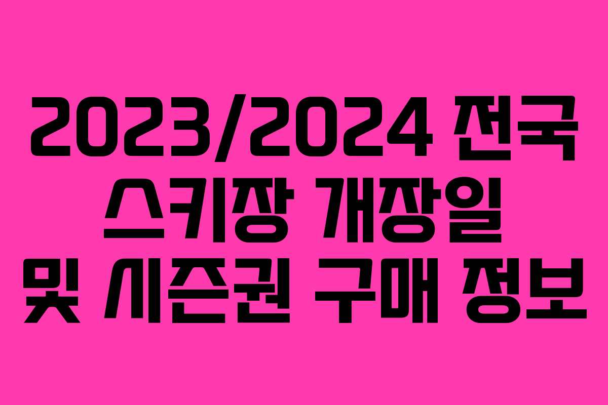 겨울 시즌이 다가오면서 많은 스키 애호가들이 전국 스키장 개장일과 시즌권 구매 정보를 찾고 있습니다. 이번 글에서는 2023/2024 시즌에 맞춰 스키장 개장일과 할인 혜택, 그리고 시즌권에 대한 정보를 종합적으로 알아보겠습니다.