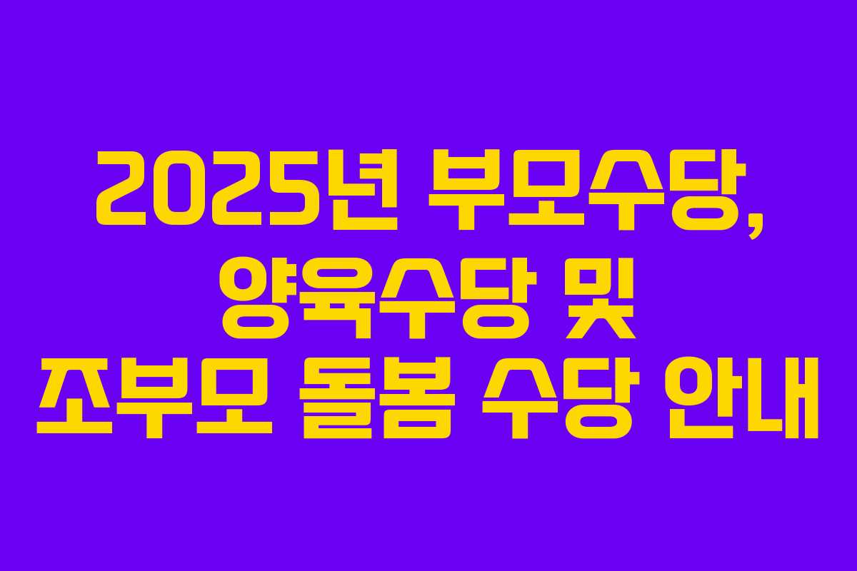 2025년에 시행될 조부모 수당, 양육수당, 부모 수당에 대한 정보를 정리하였습니다. 육아는 많은 비용이 소요되므로, 이러한 지원 제도를 통해 필요한 혜택을 꼭 챙기는 것이 중요합니다. 각 지역의 정책을 잘 파악하여 자녀 양육에 도움이 되는 지원을 받으시기 바랍니다.