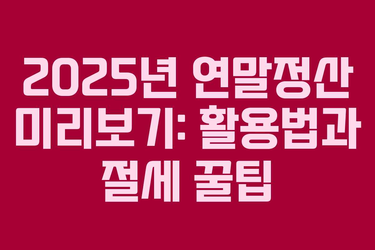 연말정산은 미리 준비하는 것이 중요합니다. 2025년 연말정산 미리보기 서비스를 통해 최대한의 환급을 받을 수 있도록 철저히 준비하시기 바랍니다.