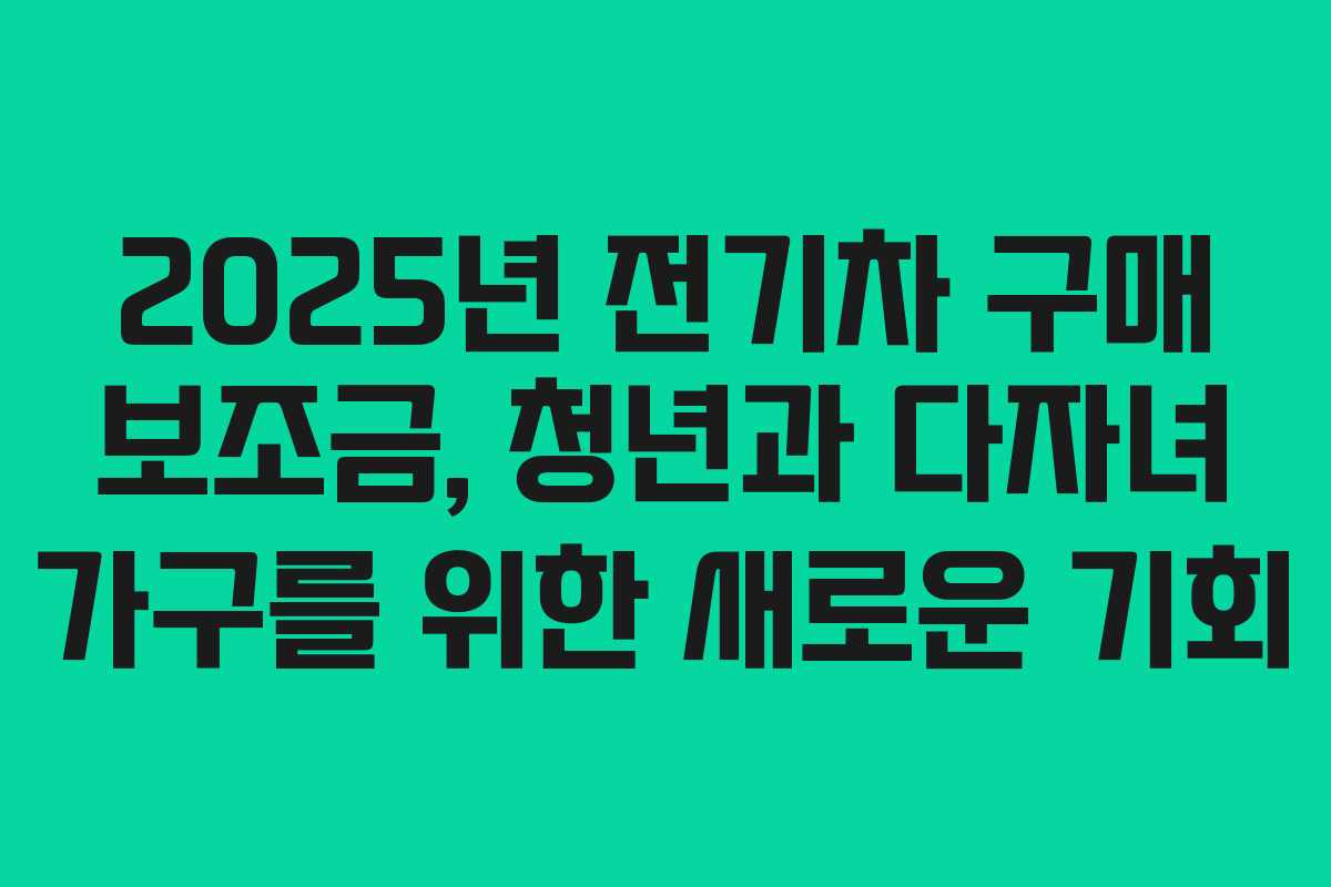 2025년부터 시행될 이 정책들은 전기차 구매를 고민하는 청년들과 다자녀 가구에 큰 도움이 될 것입니다. 개인의 환경 보호 실천을 유도하는 다양한 제도들이 마련되어 있어, 지속 가능한 미래를 위한 좋은 기회가 될 것입니다.