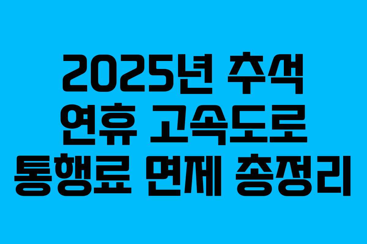 2025년 추석 연휴 동안 고속도로 통행료가 면제됩니다. 이번 연휴는 10월 2일부터 10월 5일까지로, 모든 차량이 무료로 고속도로를 이용할 수 있습니다.