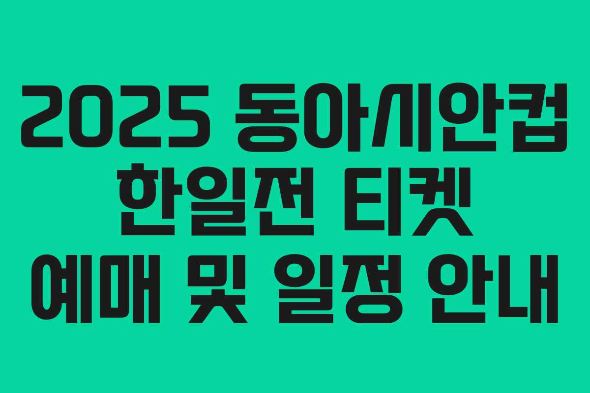 2025 동아시안컵 한일전 티켓 예매 및 일정 안내