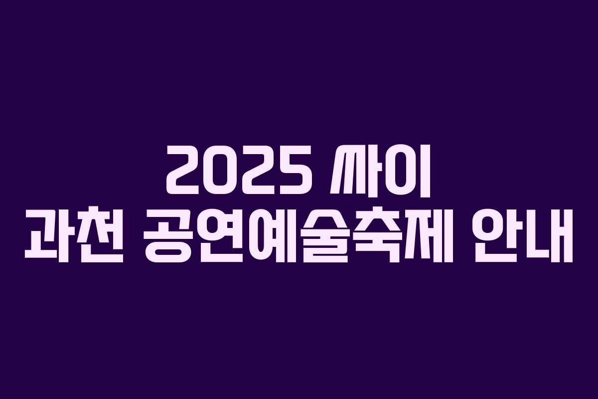 이상으로 2025 싸이 과천 공연예술축제의 예약 방법과 기본 정보를 안내드렸습니다. 많은 분들이 즐거운 시간을 보내시길 바랍니다.