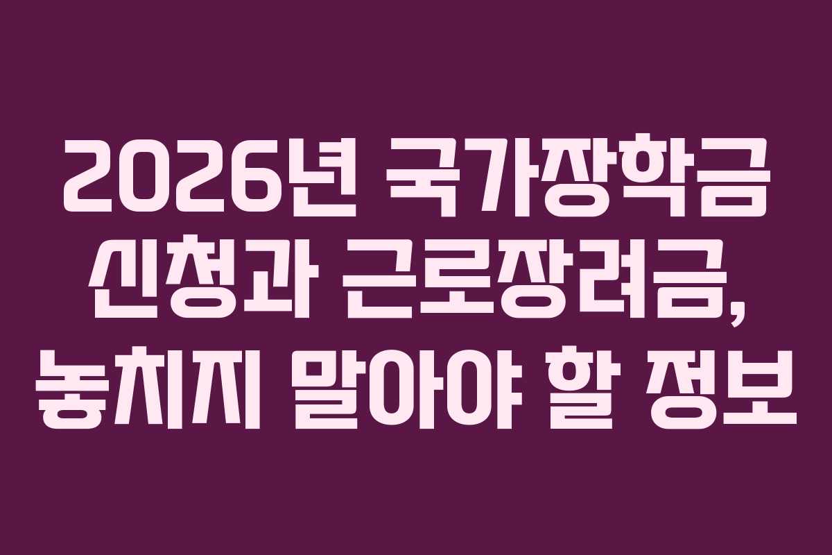2026년 상반기는 다양한 경제 지원 제도가 시행되는 중요한 시점입니다. 특히 많은 학생들이 혜택을 받는 국가장학금과 근로장려금은 각자의 상황에 맞춰 적절하게 신청하는 것이 필수적입니다. 이 글에서는 이 두 가지 지원 제도의 상세한 내용과 2026년 기준의 신청 방법에 대해 알아보겠습니다.