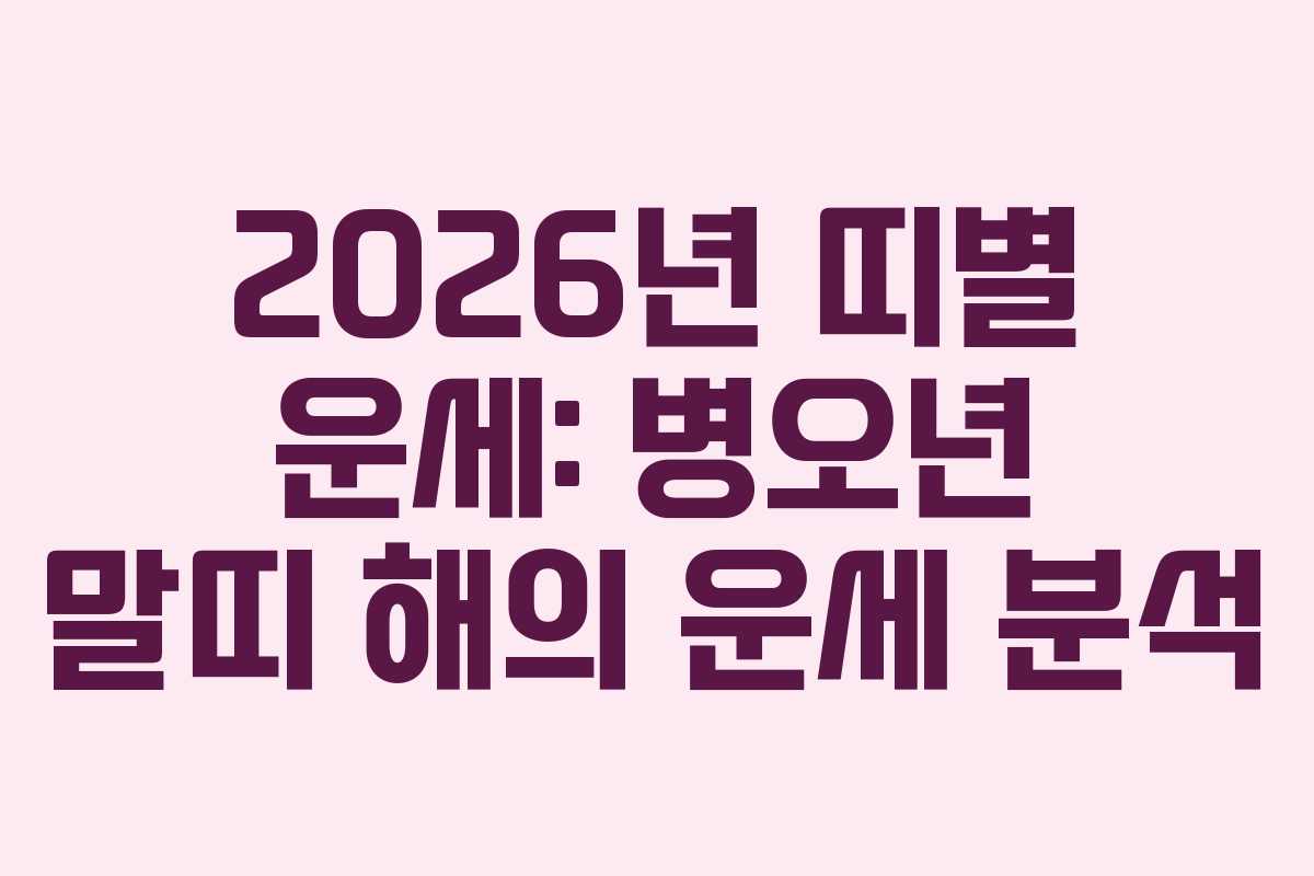 2026년은 병오년으로, 말띠의 해입니다. 이 해에는 12띠의 운세가 어떻게 달라질지 미리 살펴보는 것이 좋습니다. 특히 힘든 시기를 겪고 있는 분들에게 조금이나마 도움이 되기를 바랍니다. 이제 각 띠별 운세를 자세히 알아보겠습니다.