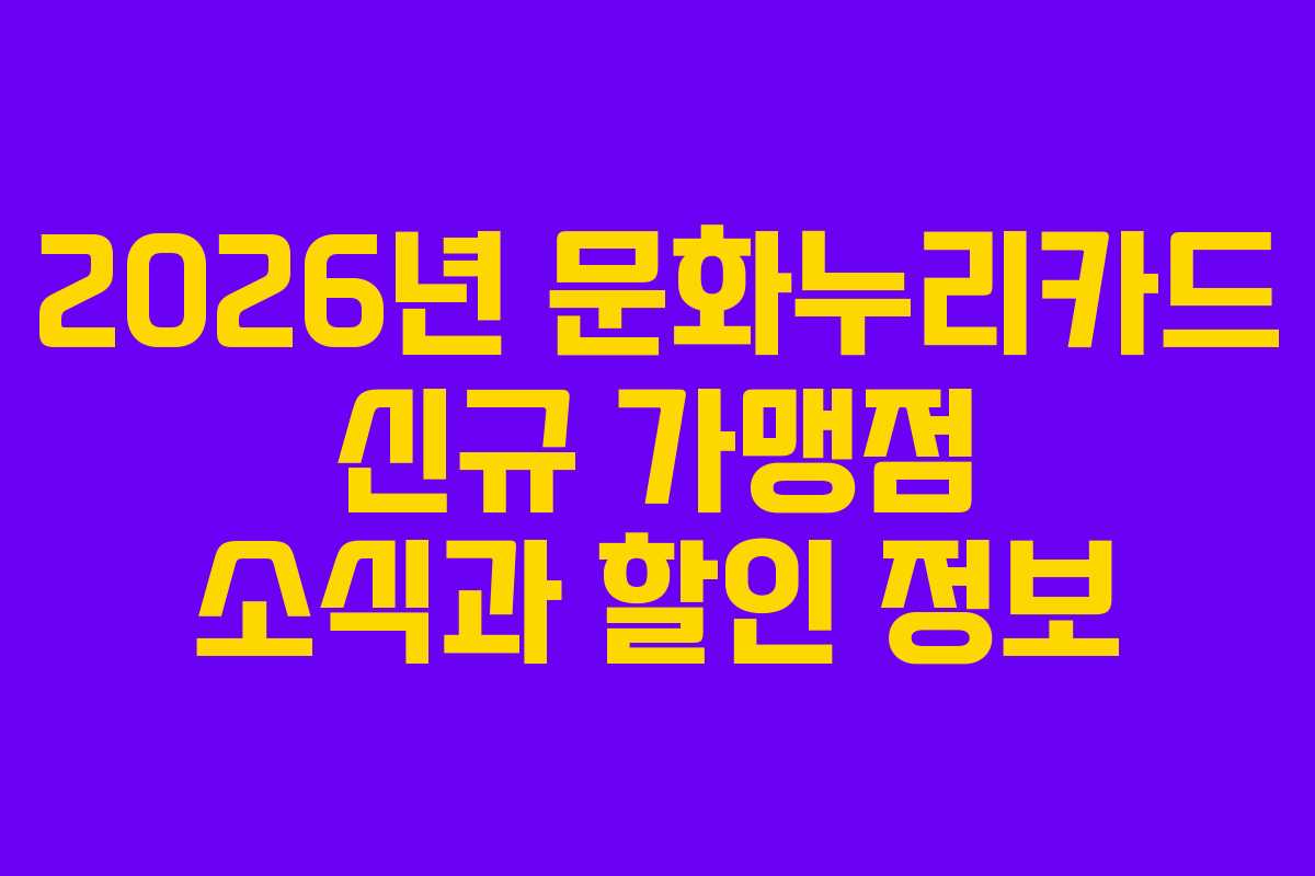 2026년 문화누리카드의 신규 가맹점 정보와 할인 혜택에 대해 안내드립니다. 다양한 문화와 체육 분야에서 여러분이 누릴 수 있는 할인 혜택을 확인해보세요. 본 내용은 2026년 기준으로 업데이트되었습니다.