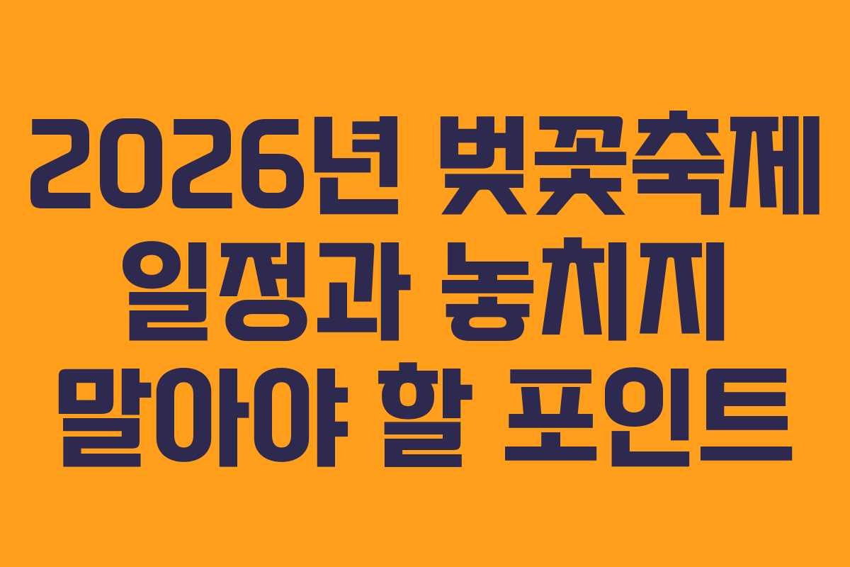 2026년 벚꽃축제의 독특한 매력과 실전 가이드