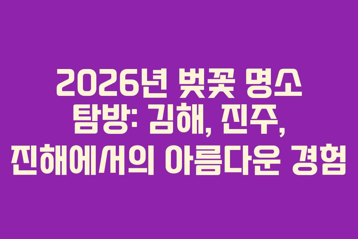 2026년 벚꽃 시즌이 다가오고 있습니다. 이 시기에 특히 매력적인 여행지로 떠오르는 김해, 진주, 진해의 주요 명소들을 소개합니다. 각 지역의 특색과 추천 활동을 통해 봄의 정수를 만끽할 수 있는 기회를 제공하겠습니다.