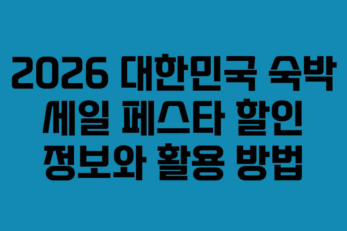 2026 대한민국 숙박 세일 페스타 할인 정보와 활용 방법