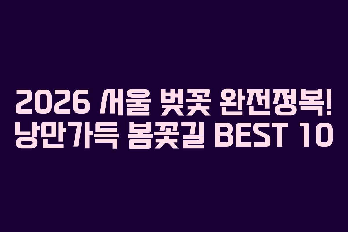 2026년 서울의 봄은 벚꽃으로 가득 찬 특별한 시즌입니다. 이 시기에 여러 벚꽃 명소를 방문하여 자연의 아름다움을 직접 느껴보는 것은 매우 의미 있는 경험이 될 것입니다. 각 명소의 개화 상태와 주변 핫플레이스를 잘 확인하고, 여유로운 마음으로 벚꽃길을 걸으며 소중한 순간들을 기록하세요. 서울의 벚꽃이 여러분을 기다리고 있습니다.