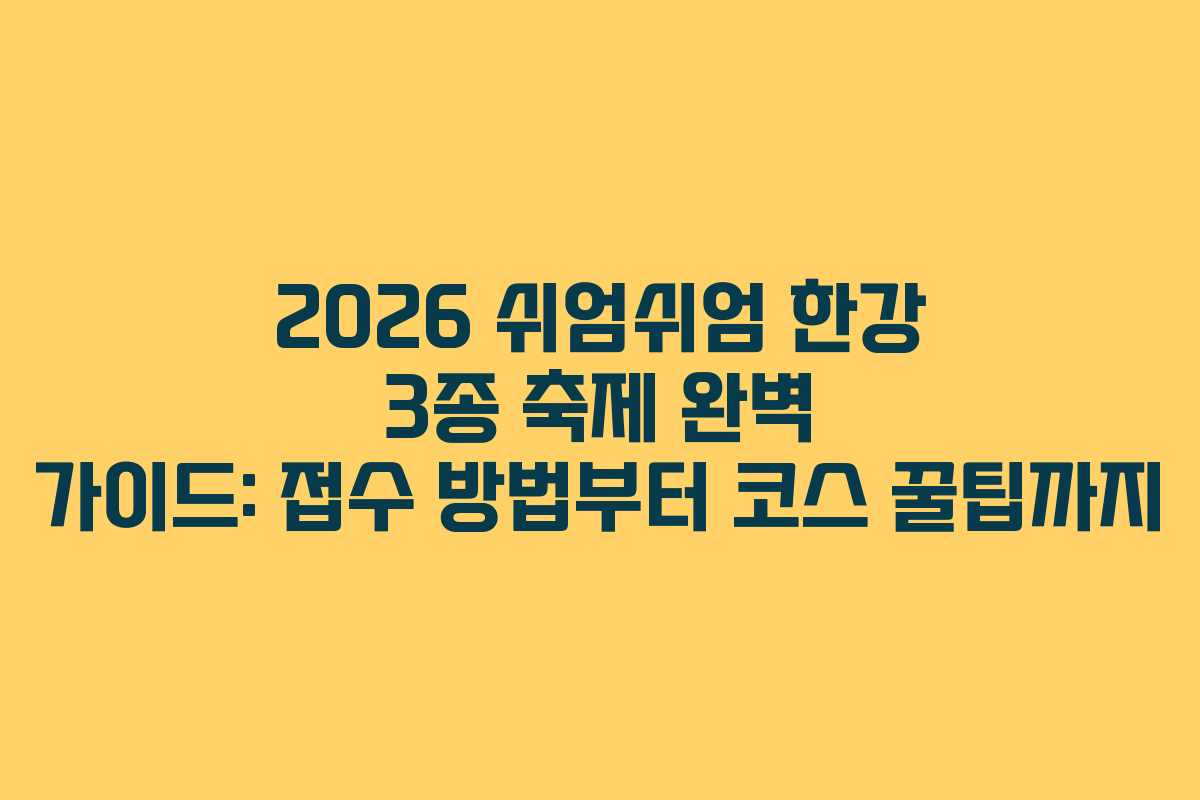 2026 쉬엄쉬엄 한강 3종 축제는 서울 시민들이 자연을 느끼며 운동과 여가를 즐길 수 있는 특별한 행사입니다. 미리 체력을 준비하고, 다가오는 신청 기간에 꼭 참가해보세요. 서울의 봄을 한강에서 만끽하는 소중한 경험이 될 것입니다.