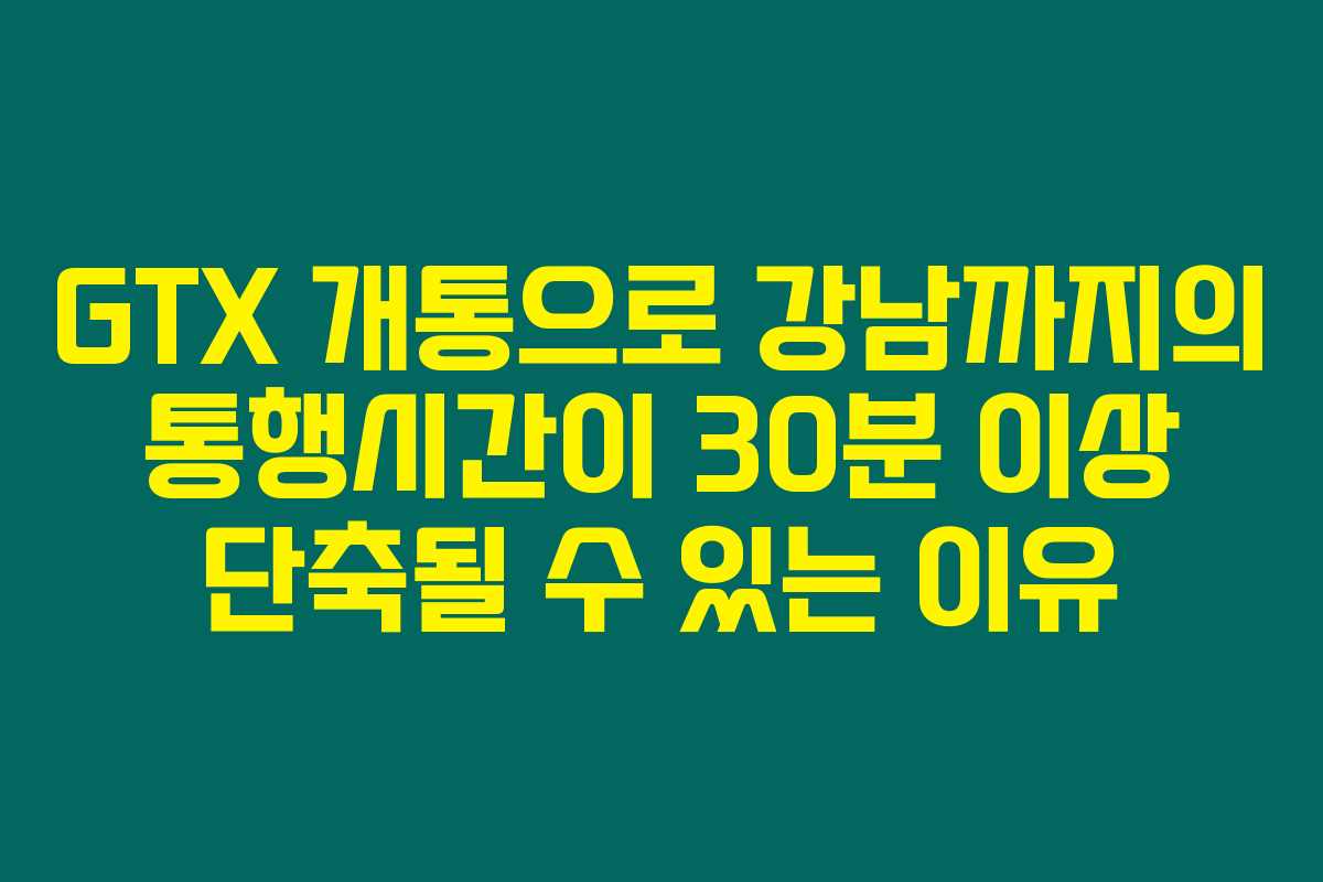GTX 개통 이후, 강남까지의 통행시간이 30분 이상 단축될 것으로 보고되고 있어요.