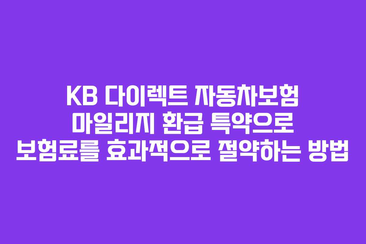 - KB 다이렉트 자동차보험 마일리지 환급 특약은 무엇인가요?