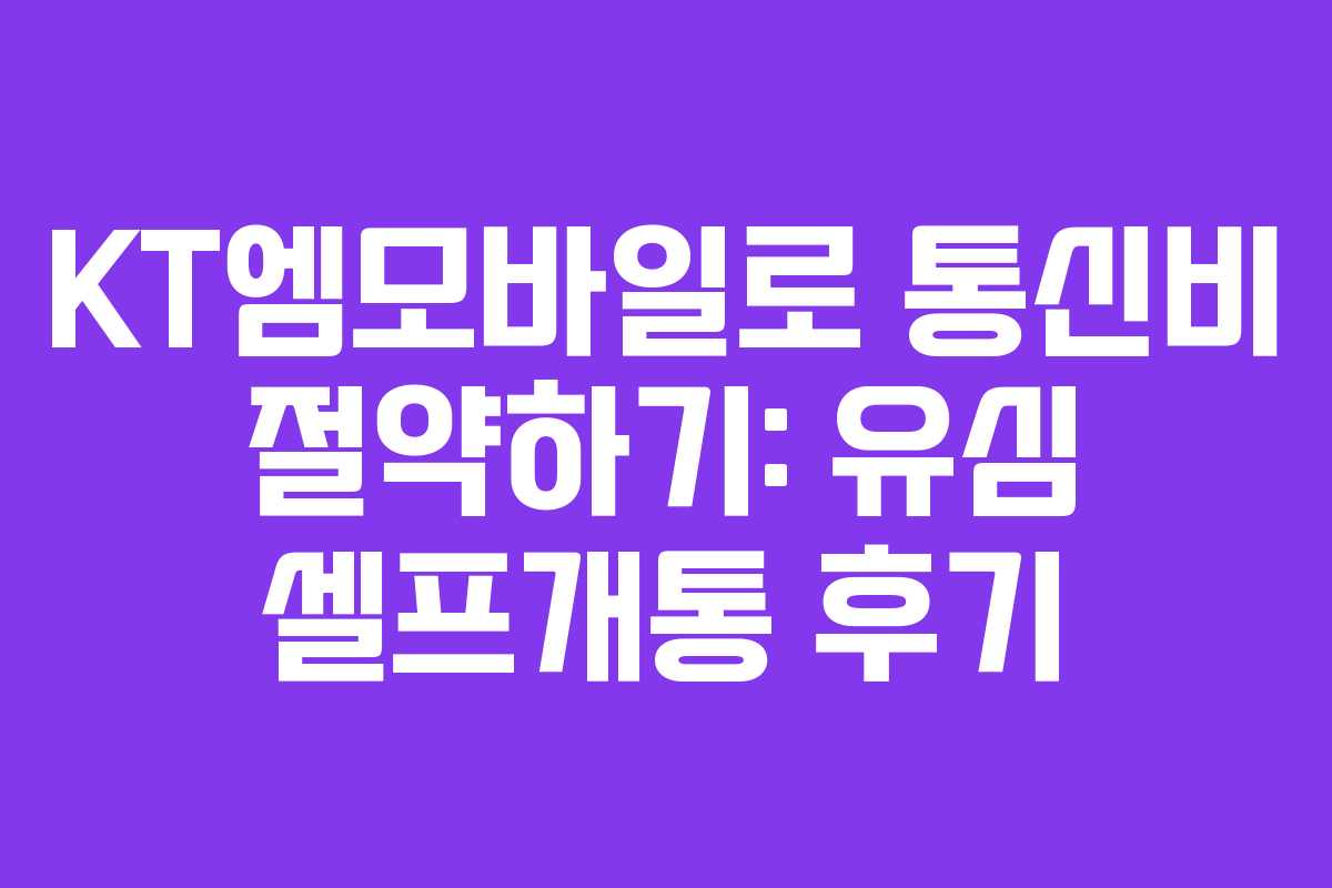 많은 분들이 통신비 때문에 고민하고 계실 텐데요, 저는 최근에 KT엠모바일로 요금제를 변경하면서 절약할 수 있는 방법을 찾았습니다. 약정이 끝난 후, 기존 번호를 유지하면서도 저렴한 요금제를 이용할 수 있는 기회를 얻었죠. 이번 글에서는 KT엠모바일 유심 구매와 셀프개통 과정을 공유하겠습니다.