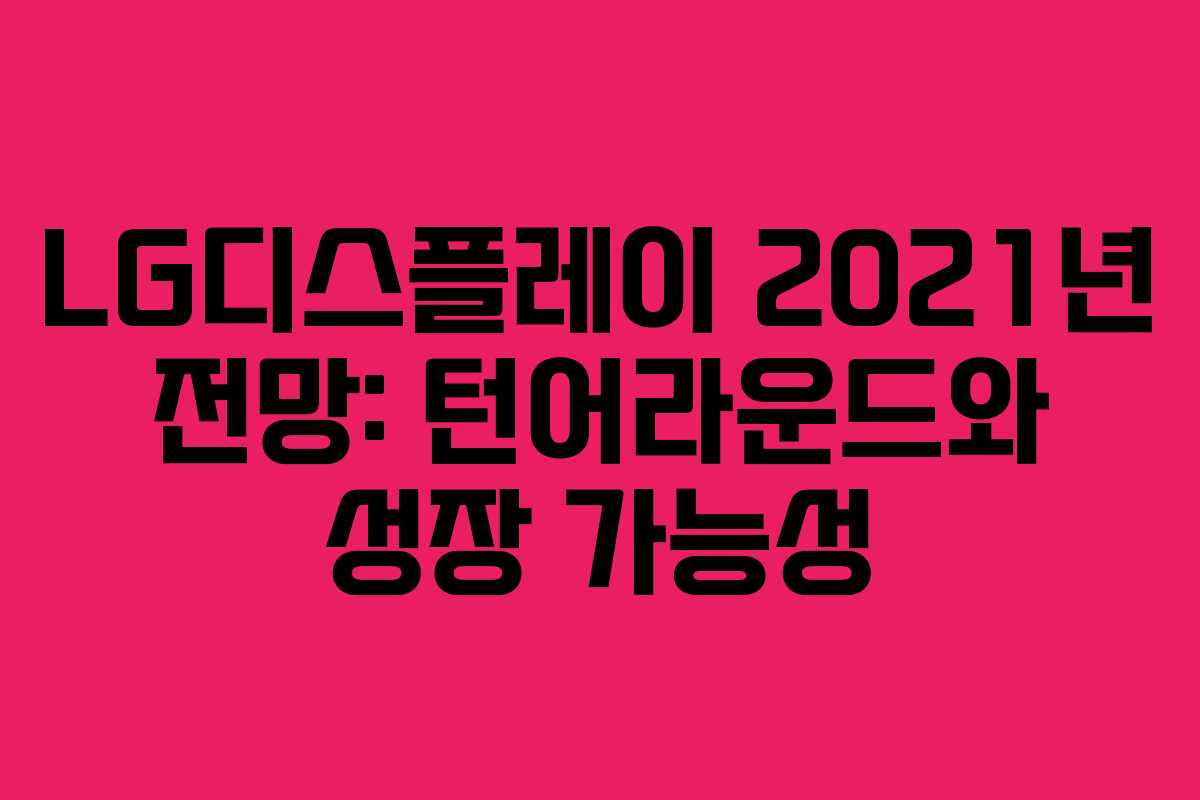 LG디스플레이는 2020년 4분기 실적이 긍정적으로 예상되며, 이익 성장이 지속될 것으로 보입니다. 이번 글에서는 LG디스플레이의 2020년 4분기 실적 전망과 2021년 예상 실적, 그리고 향후 성장 가능성에 대해 살펴보겠습니다.