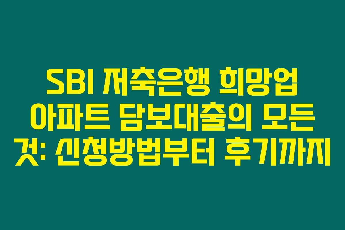 제가 직접 리서치한 바로는, SBI 저축은행 희망업 아파트 담보대출은 아파트를 담보로 한 금액 대출이 필요한 분들에게 유익한 상품입니다. 자신의 조건과 잘 맞는지 검토해보시길 추천해요!