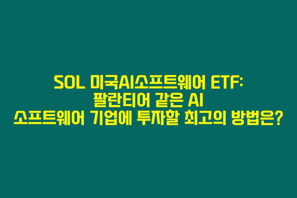 제가 직접 체크해본 바로는 SOL 미국AI소프트웨어 ETF는 팔란티어(PLTR)와 같은 AI 소프트웨어 기업에 투자의 매력을 제공합니다. 이 글에서는 SOL ETF의 성과, 구성 종목 및 수수료에 대해 알아보고, 전반적인 AI 소프트웨어 산업의 전망에 대해 공유하겠습니다. 아래를 읽어보시면, 이 ETF가 왜 그렇게 주목받고 있는지 알게 되실 거예요.