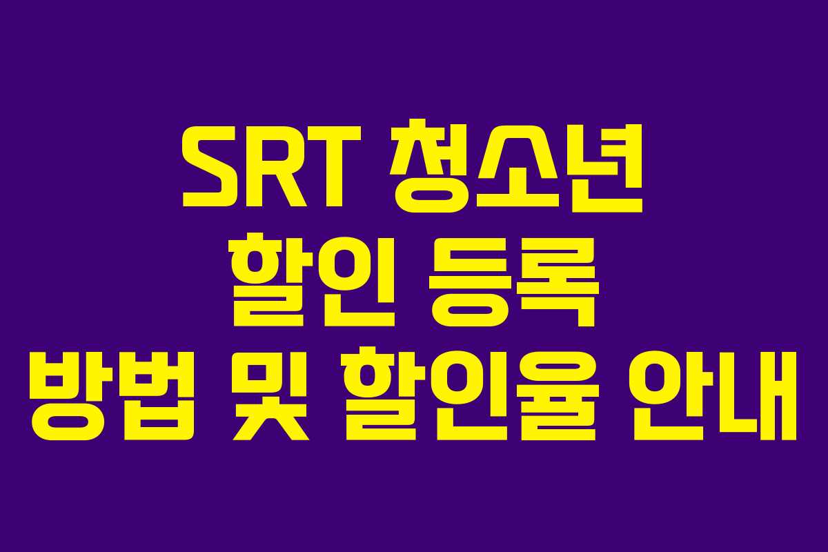많은 대학생과 청소년들에게 도움이 될 SRT 청소년 할인에 대한 정보를 공유하고자 합니다. SRT의 청소년 할인은 만 25세 미만의 청소년을 대상으로 하며, 할인율은 10%입니다. 이 글에서는 할인 등록 방법과 유의사항을 설명하겠습니다.