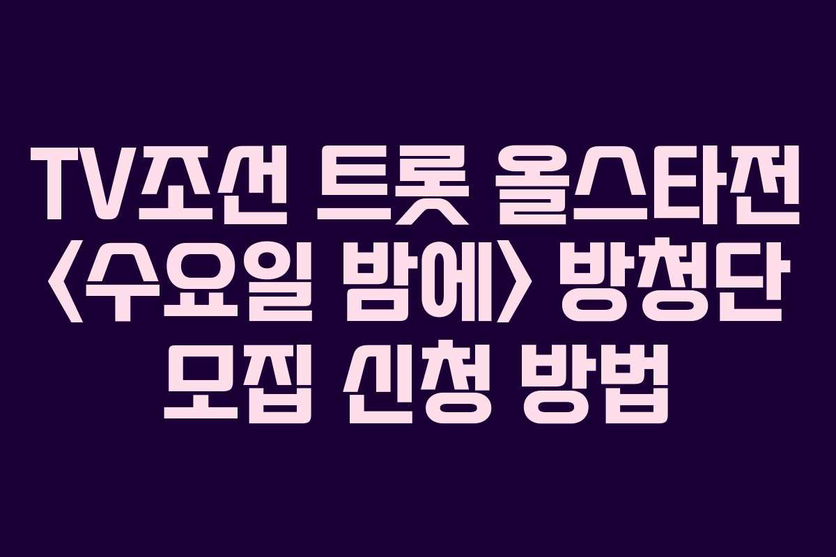 TV조선의 인기 프로그램인 트롯 올스타전 <수요일 밤에>의 방청단 모집 신청 방법에 대한 정보를 안내합니다. 이 글에서는 신청 절차부터 주의사항까지 자세히 설명드리겠습니다.